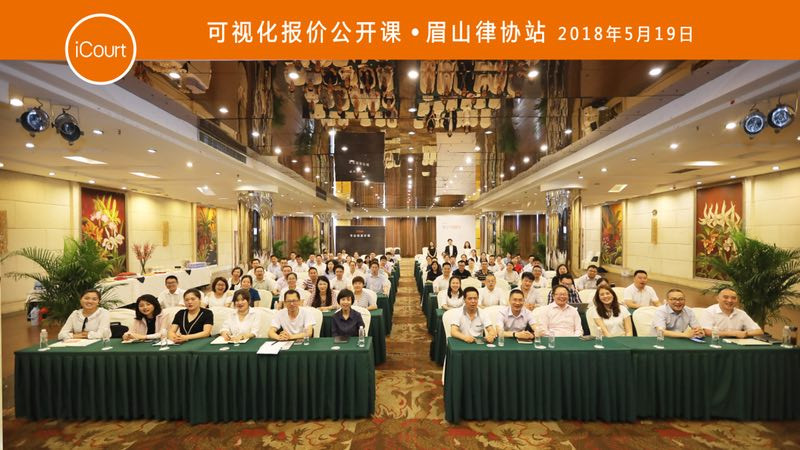5月19日下午,iCourt可视化报价公开课在眉山市东坡国际大酒店顺利举办。本次活动由眉山市律师协会主办、四川达宽律师事务所承办。