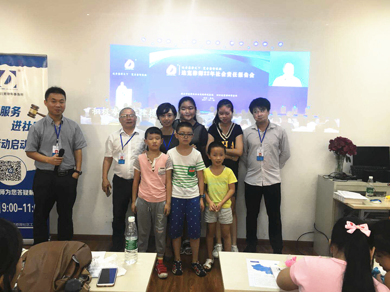 2018年8月9日,由成都市金牛区司法局、茶店子街道办、茶店子司法所、茶店子派出所牵头,由四川达宽律师事务所和锦城社区共同承办的“普法宣讲走基层”暨“中小学生暑期法治安全教育巡回专题讲座”拉开帷幕,锦城社区“小小法律志愿者”在行动正式启动。