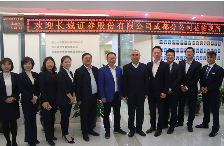继2018年8月8日,四川达宽律师事务所与长城证券成都分公司就资本市场服务领域合作进行洽谈后,双方就现代化企业培育、企业上市、企业债券和企业债务证券化(ABS)业务合作等方面达成了合作意向。