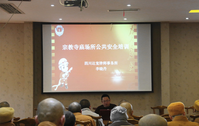 12月12日,眉山市佛教协会2018年培训会在圣境月顺利举行,受市民宗局邀请,四川达宽律师事务所律师李晓丹为全市佛教寺庙僧侣们开展了《宗教寺庙场所公共安全培训》专题讲座。