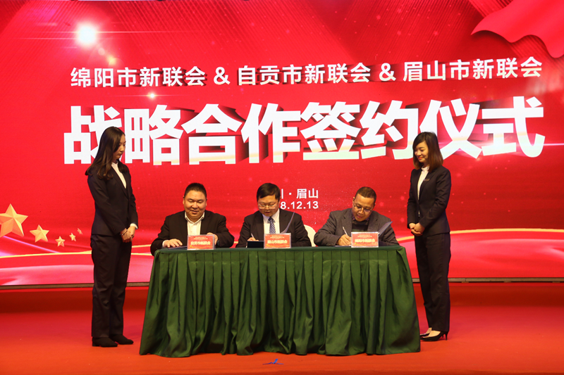 吕勇代表眉山市新联会与绵阳、自贡新联会签订战略合作协议