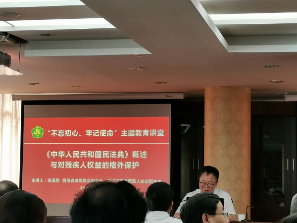 7月13日上午,为推进《民法典》普法宣传工作,以及帮助残疾人了解如何保护自身权益,四川达宽律师事务所主任陈泽刚应四川省残疾人联合会的邀请宣讲《民法典》。