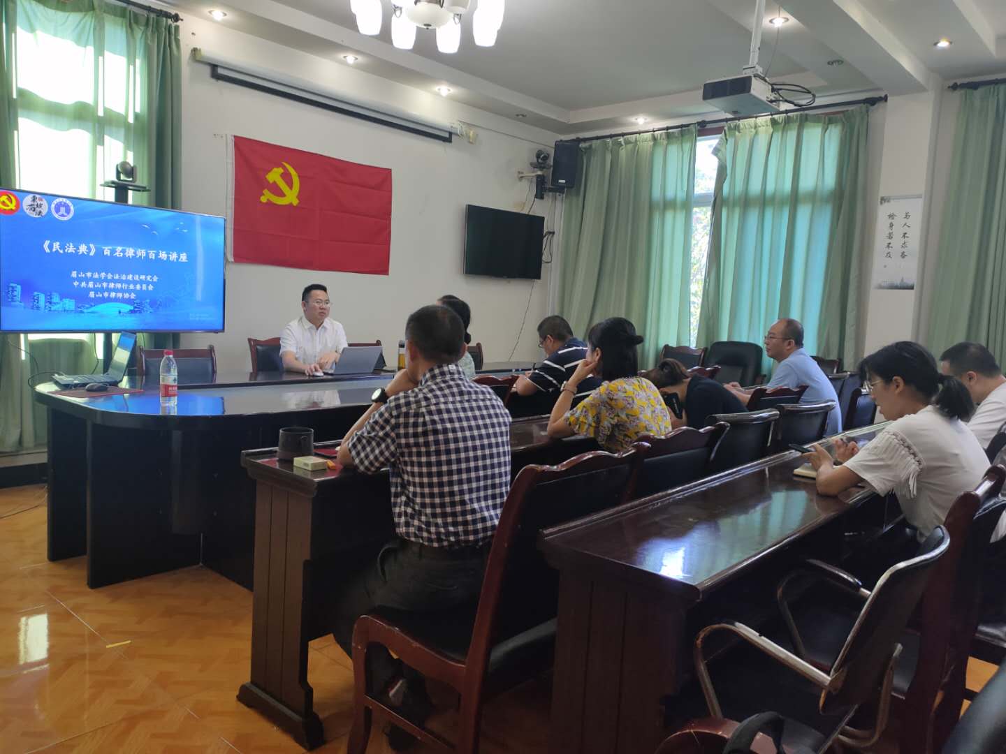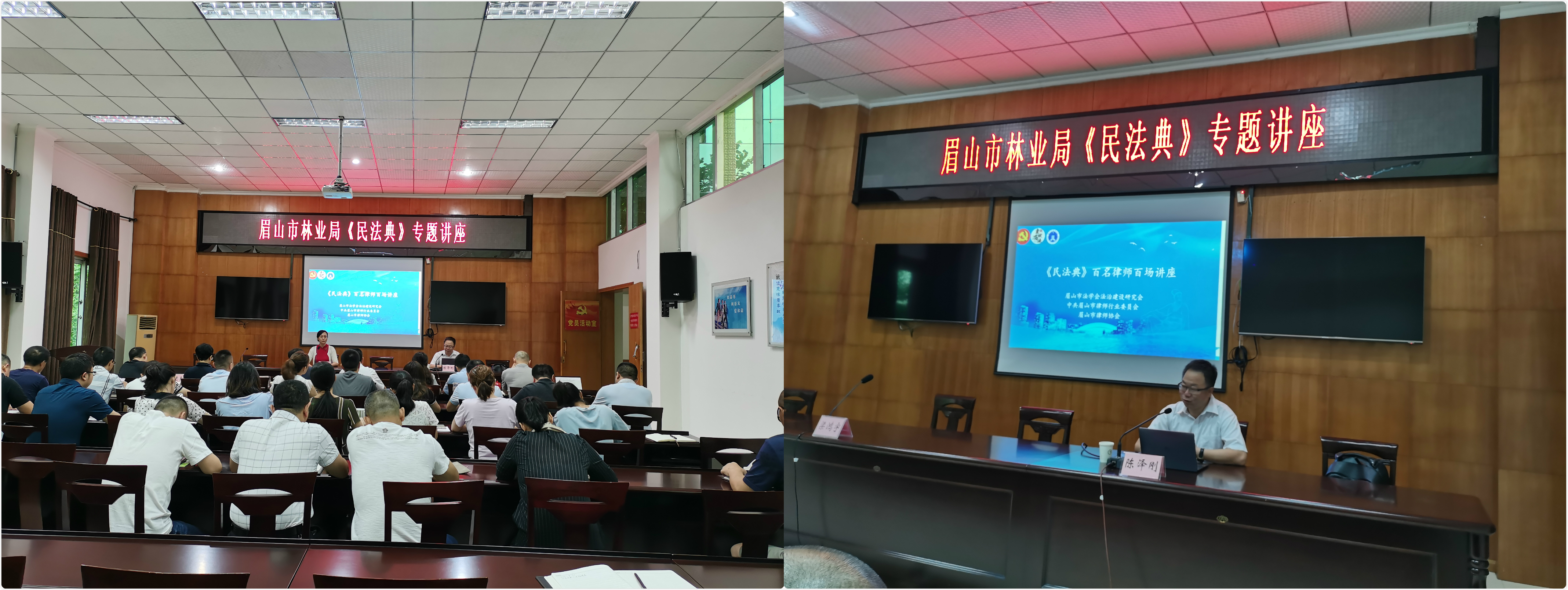 眉山林业局《民法典》宣讲:2020年8月31日上午,四川达宽律师事务所主任律师陈泽刚在眉山市林业局开展《民法典》专题讲座。宣讲主题为:民法典概述与对林业工作的影响。林业局干部职工均到场参与,仔细聆听宣讲内容。讲座上,陈泽刚律师简述《中华人民共和国民法典》概述、结合诸多社会热点和真实事例详述民法典的创新与亮点,全面解析民法典中涉及林业的规定,介绍民法典对依法行政的影响,进一步加深了林业局机关干部职工对《民法典》的认识与理解。