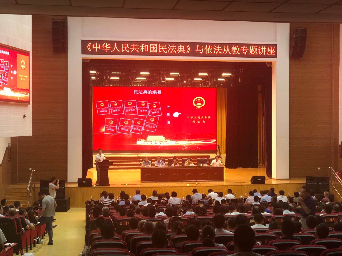 仁寿开展《民法典》专题讲座第7场:2020年8月26日,四川达宽律师事务所李思行律师在仁寿开展《民法典》专题讲座第7场——为仁寿县全县学校、幼儿园负责人及各校(园)分管法治教育的副校(园)长、局机关全体在职干部职工500余人举行依法从教的专题讲座。讲座上,李思行律师围绕编纂《民法典》的历程、意义及主要内容,《民法典》的核心要义,《民法典》中哪些内容与校园伤害事件有关,以及《民法典》常见问题进行深入系统、精辟生动地解读,并辅以生活中常见案例讲解,深入浅出地将《民法典》精神植入人心。既有理论的深度,又有实践的厚度,为在职干部职工更准确地理解《民法典》开启了“一扇门”,受到大家的一致好评。