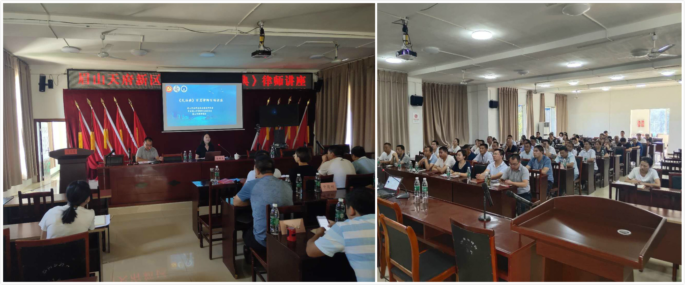 贵平镇人民政府《民法典》宣讲:2020年8月27日,四川达宽律师事务所漆世兰律师在贵平镇人民政府开展《民法典》专题讲座,本次专题讲座受到贵平镇人民政府领导高度重视,组织单位全体干部职工参加此次讲座。讲座上,漆世兰律师围绕《民法典》的总则、物权编、合同法、侵权责任法等方面进行深度解析,从编撰历程、框架结构、主要内容、价值理念、立法亮点等方面对民法典进行了全面系统解读。