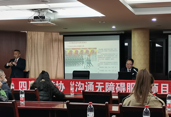 2020年11月29日下午,四川达宽律师事务所主任陈泽刚受四川省聋人协会邀请参与了由四川省残联指导、四川省聋人协会主办的“沟通无障碍服务项目”推广系列活动。以线上、线下同步直播的方式开展“民法典的概述与对残疾人权利保障的格外保护”专题讲座,现场推出直播+实时字幕+手语翻译,真正做到信息无障碍全覆盖。