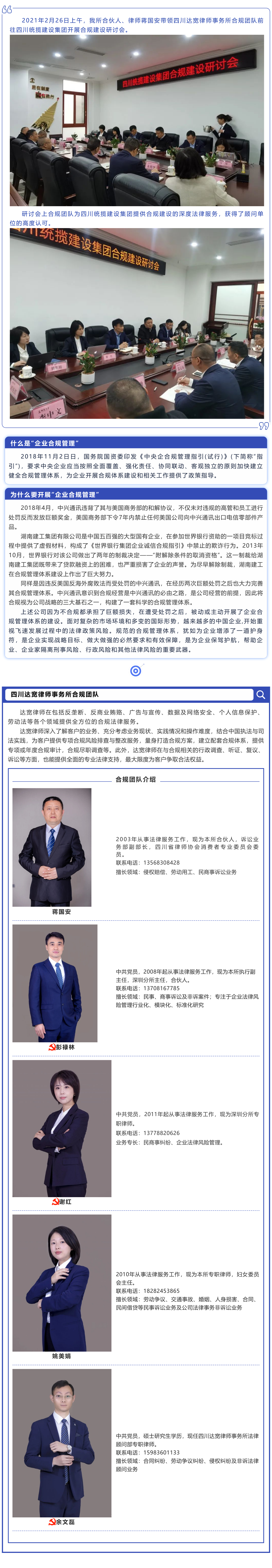 四川达宽律师事务所合规团队与四川统揽建设集团开展合规建设研讨会