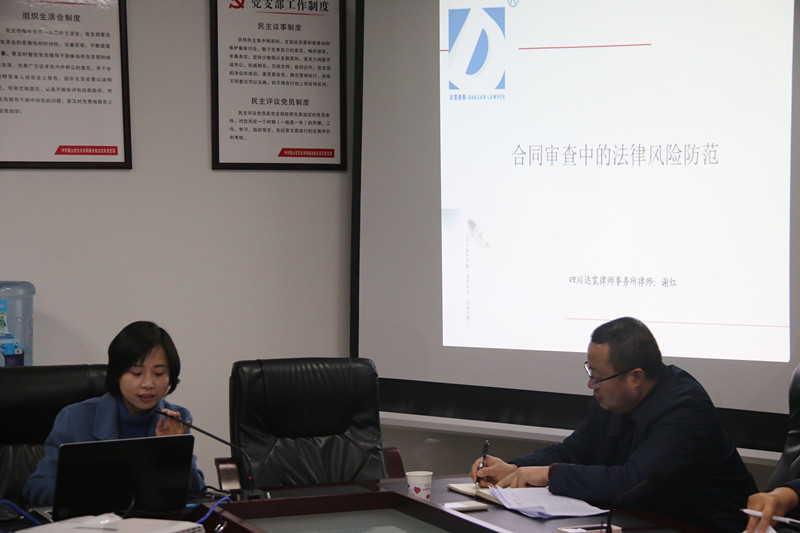 2月5日,我所律师谢红受邀前往眉山市文化广电新闻出版局开展合同审查中的法律风险防范专题讲座。市文广新局相关部门人员听取讲座。