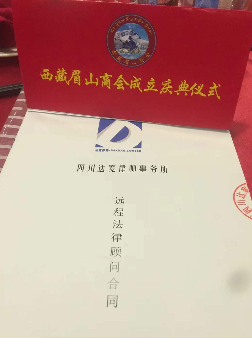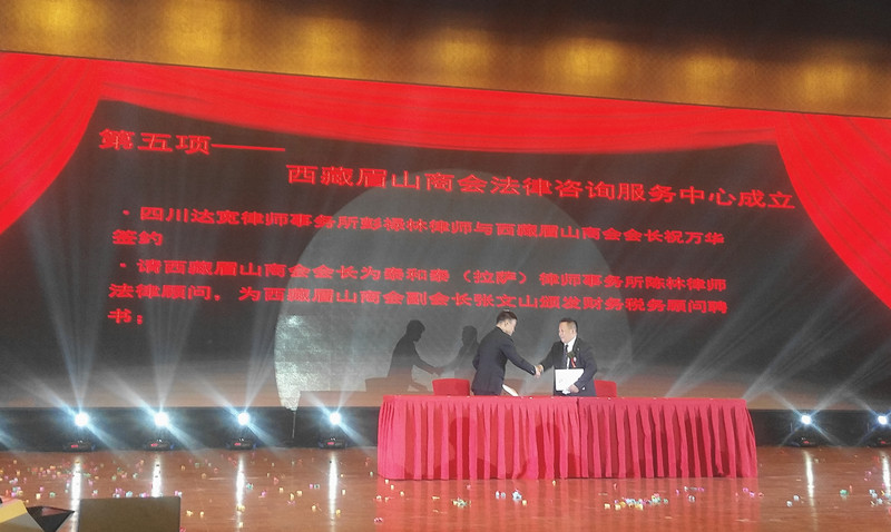 为切实做好眉山籍在西藏地区就业创业者的管理及合法权益维护,加强家乡与在外眉山企业的联系,支持在外企业的发展,实现资源共享,共同发展,9月15日,四川达宽律师事务所副主任彭禄林与西藏眉山商会会长祝万华先生签订了《远程法律顾问合同》。