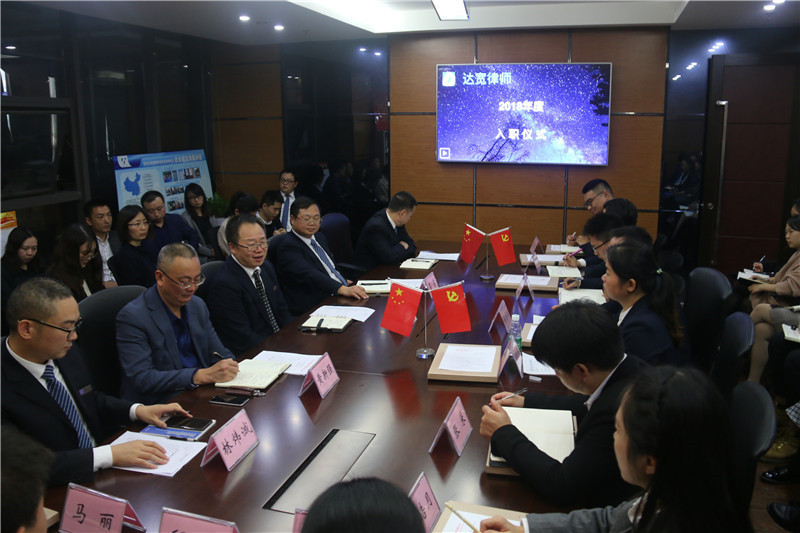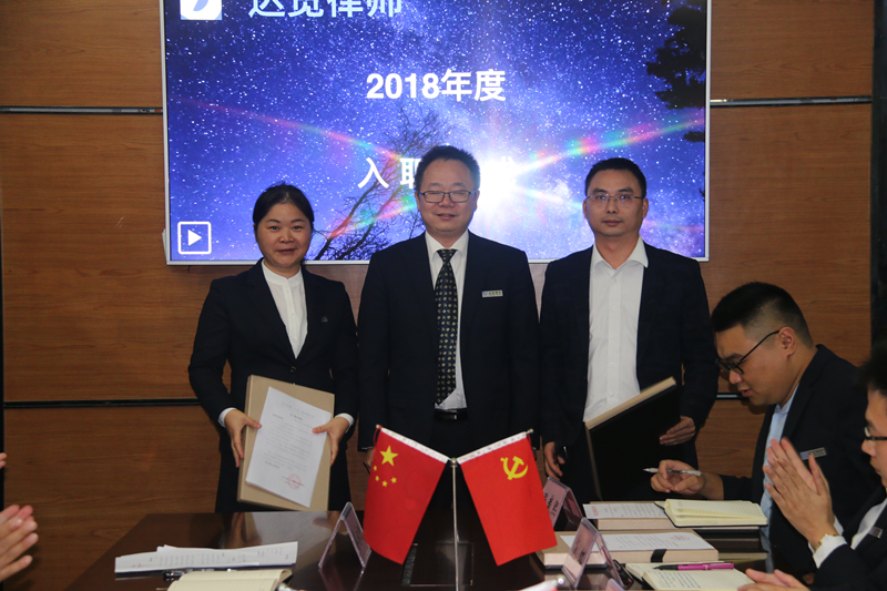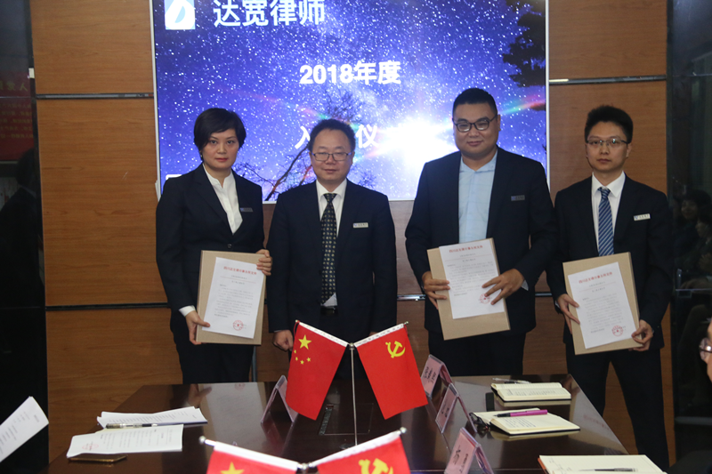 入职仪式由四川达宽律师事务所执行主任吕勇主持,吕主任首先对新入职、转正的工作人员和新入职的律师表示热烈地欢迎,并对新入职、转正的工作和新入职的律师表达了深切的期望和浓郁的情怀。吕主任说到:“达宽是一个充满关爱、充满热情、充满情怀的大家庭,每一位达宽人,都是达宽的亲人,都是达宽的家眷;达宽昨天的发展,今天的荣耀,明天的辉煌,都离不开每一位达宽人地艰辛付出,希望今天你们因达宽而骄傲,明天达宽因你们而自豪”。