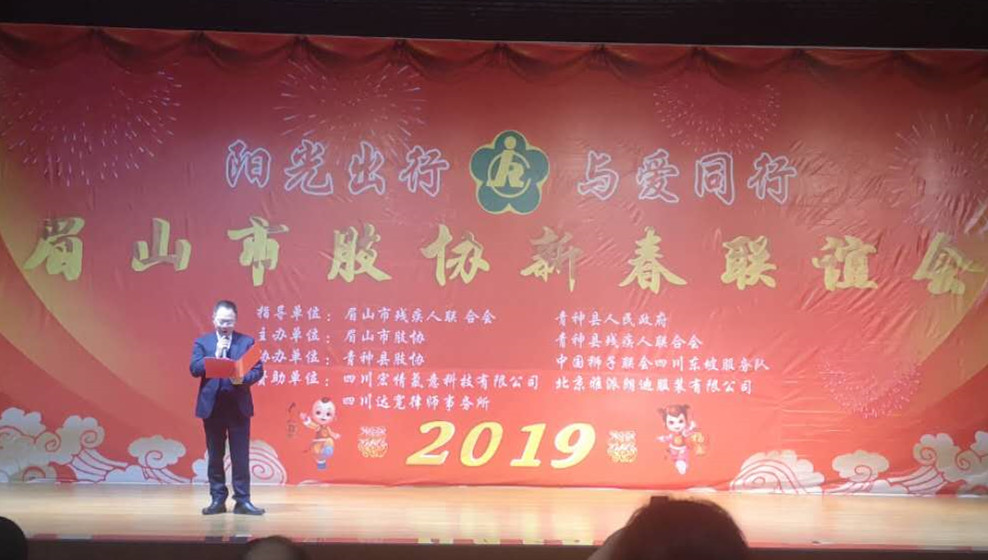 1月26日,眉山市肢协在青神县国际竹艺城旅游景区举办主题为“阳光出行,与爱同行”新春联谊会,此次活动由四川达宽律师事务所、四川宏情氯意科技有限公司、北京雅派朗迪服装有限公司联合赞助,市残联副主席、肢残人协会主席、四川达宽律师事务所主任陈泽刚出席并作2018年工作总结和2019年工作安排。