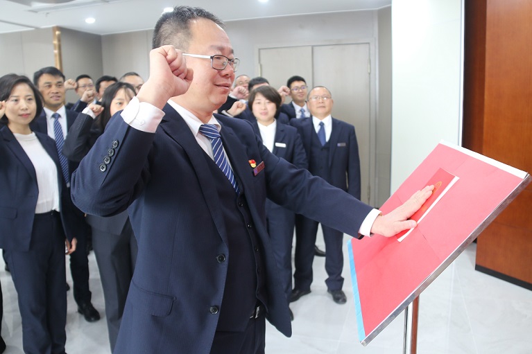 今年的律师宣誓增加了宪法宣誓。上午10点,全所律师在党支部书记、主任陈泽刚的领誓下庄严宣誓,“我宣誓:我是中华人民共和国律师,忠于宪法,忠于祖国,忠于人民,维护当事人合法权益,维护法律正确实施,维护社会公平正义,恪尽职责,勤勉敬业,为建设社会主义法治国家努力奋斗!”