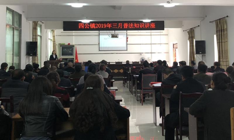 为了进一步加强农村法治宣传工作,更加牢固地树立村干部的农村土地流转的法治观念,维护农村稳定和谐,2019年3月22日下午,四川达宽(仁寿)律师事务所专职律师刘人瑕应仁寿县四公镇党委政府的邀请在四公镇开展主题为“农村土地流转”的普法知识讲座。镇党委书记蒋再明及镇长雷全对本次普法知识讲座高度重视,全镇80余名镇村干部参加了此次讲座。