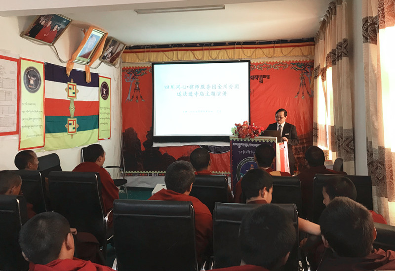 根据眉山市2019年度第一次四川同心律师法律服务团金川分团分工安排,4月17日,我所执行主任吕勇在金川县寺庙为全体僧侣们开展《送法进寺庙》专题讲座。