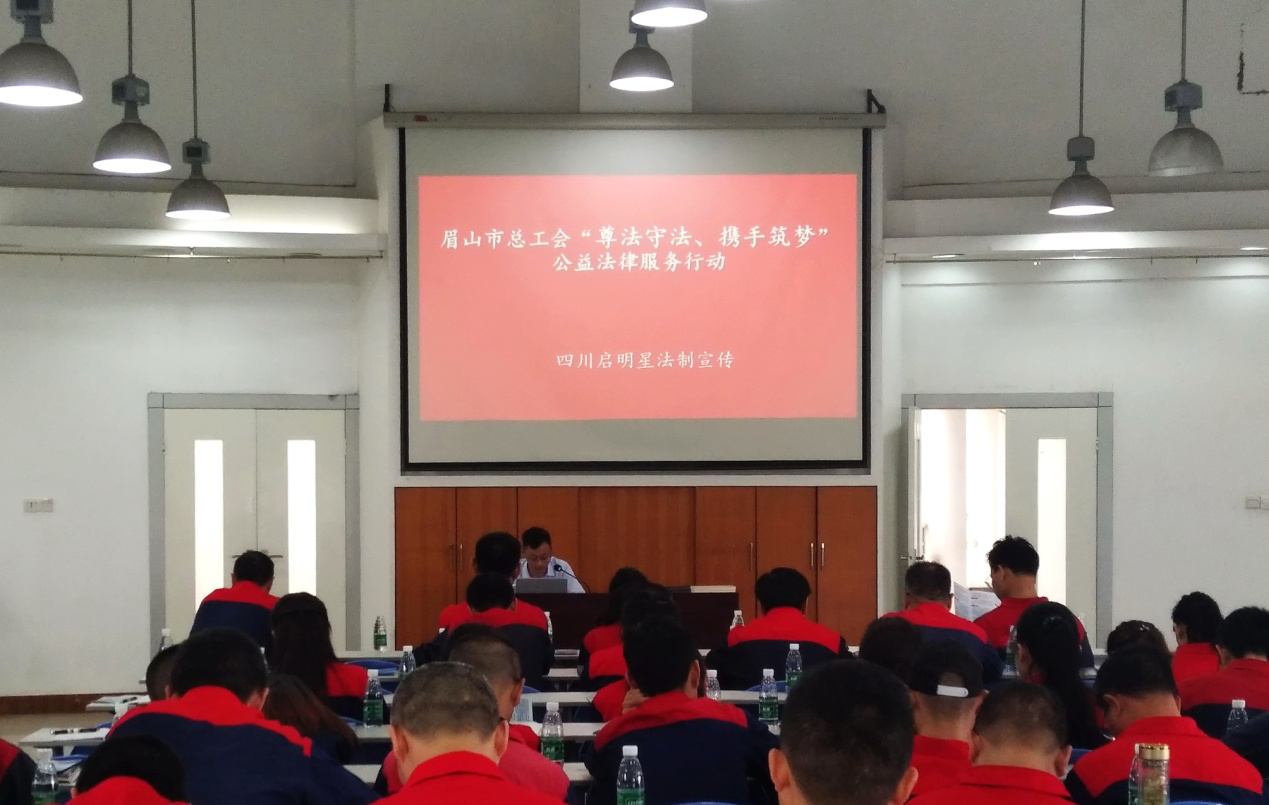 5月15日,我所律师赵伟慧、余文磊受眉山市总工会和四川启明星铝业有限公司邀请以《企业劳动用工法律知识》为主题向四川启明星铝业有限公司工会委员会委员、经费审查委员会委员、各分工会主席、分工会委员、工会小组长等50余人进行了专题法律知识培训。