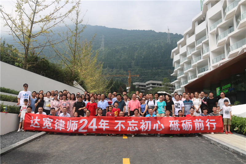 为庆祝我所成立24周年,7月27、28日,我所全体律师、行辅人员及家属前往洪雅七里坪洲际酒店开展庆祝活动。28 日上午,达宽律师在洲际酒店会议室开展了茶话会,就律所24年来辛勤付出的达宽律师及家属给予了特殊的荣誉!