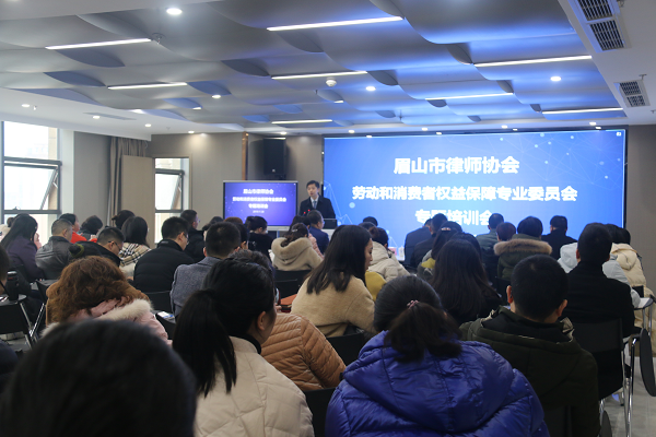 11月30日,眉山市律协劳动和消费者权益保障专业委员会专题培训会在我所举行,本次会议由市律协会长、四川达宽律师事务所党支部书记、主任陈泽刚致开幕词,市律协劳动和消费者权益保障专业委员会主任、四川达宽律师事务所合伙人李思行主持,邀请了成都市高新区法院法官周航为大家作“以案说法——企业如何签订劳动合同、制订规章制度、解除劳动合同”的专题讲座,共100余人参加。